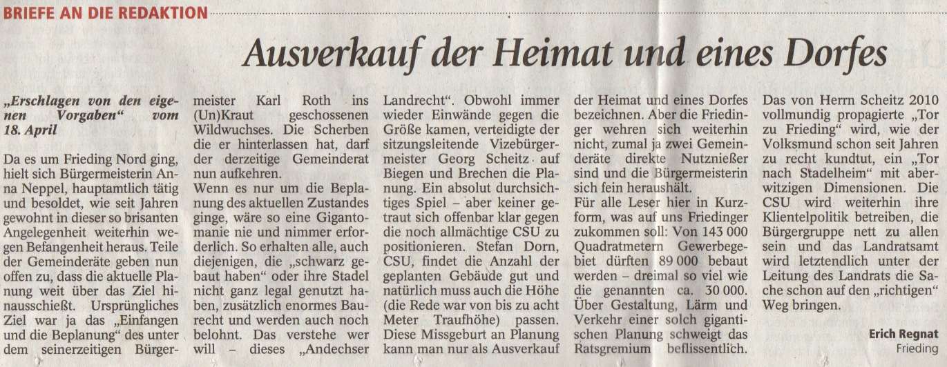 Merkur vom 09.06.2015 - Frieding Nord nochmal auf Anfang bitte