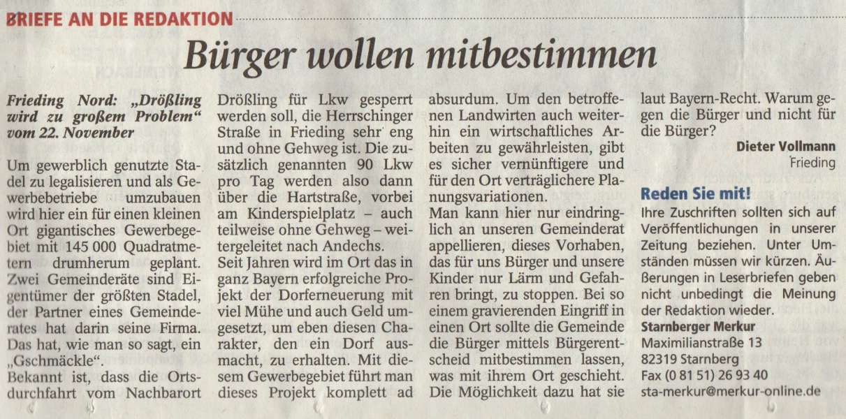 Merkur vom 26.11.2013 - Bürger wollen mitbestimmen