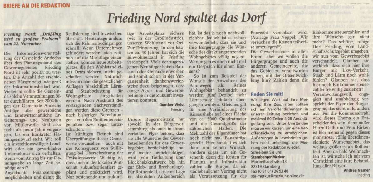 Merkur vom 02.12.2013 - Frieding Nord spaltet das Dorf