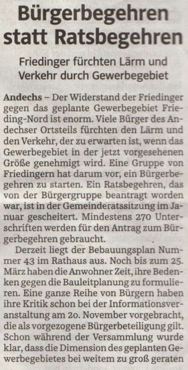 Kreisbote vom 20.12.2014 - Diskussion über geplantes Gewerbegebiet Frieding Nord