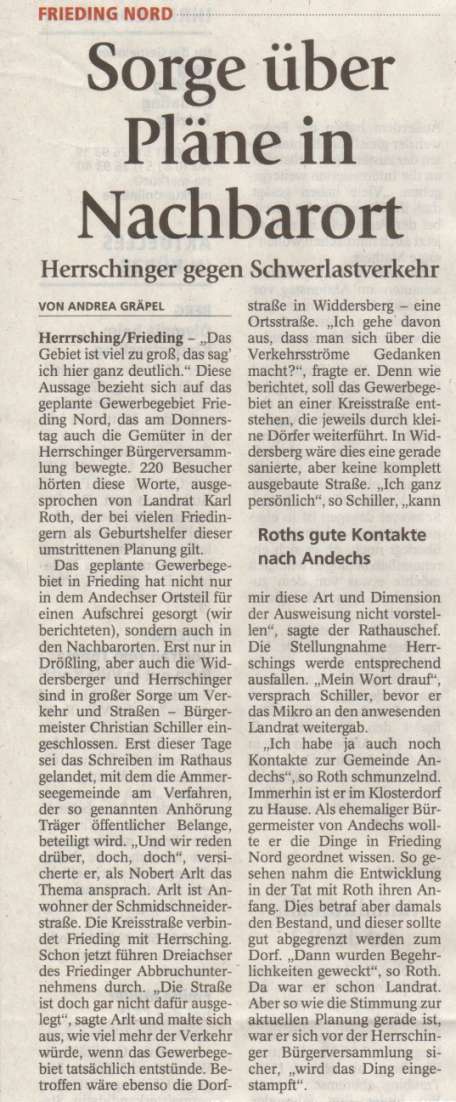 Kreisbote vom 20.12.2014 - Diskussion über geplantes Gewerbegebiet Frieding Nord
