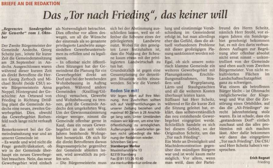 Merkur vom 09.06.2015 - Frieding Nord nochmal auf Anfang bitte
