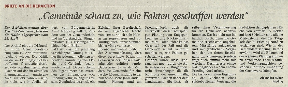 Merkur vom 09.06.2015 - Frieding Nord nochmal auf Anfang bitte
