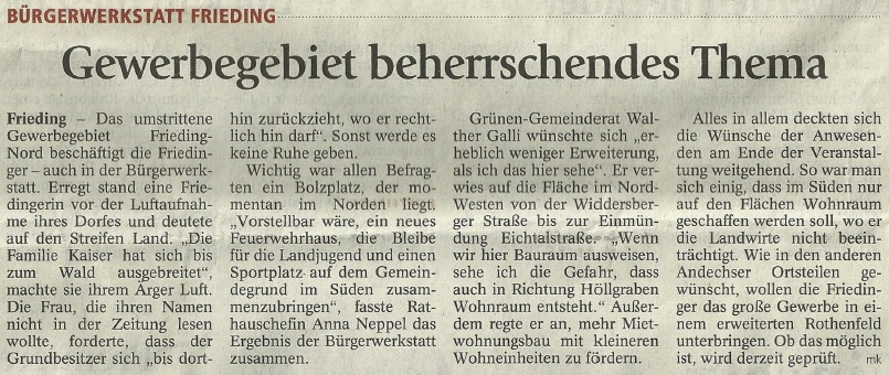 Kreisbote vom 20.12.2014 - Diskussion über geplantes Gewerbegebiet Frieding Nord