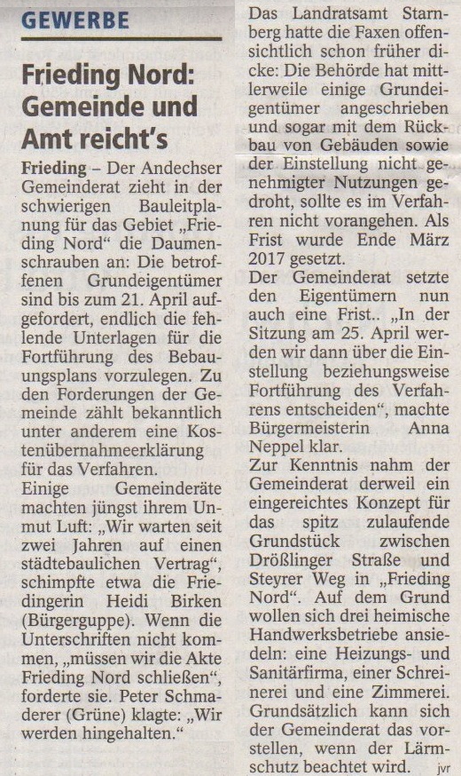 Merkur vom 09.06.2015 - Frieding Nord nochmal auf Anfang bitte