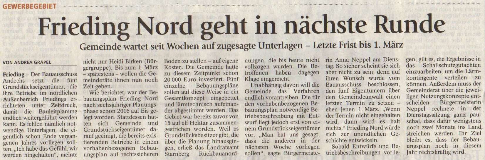 Merkur vom 18.01.2018 - Frieding Nord geht in nächste Runde