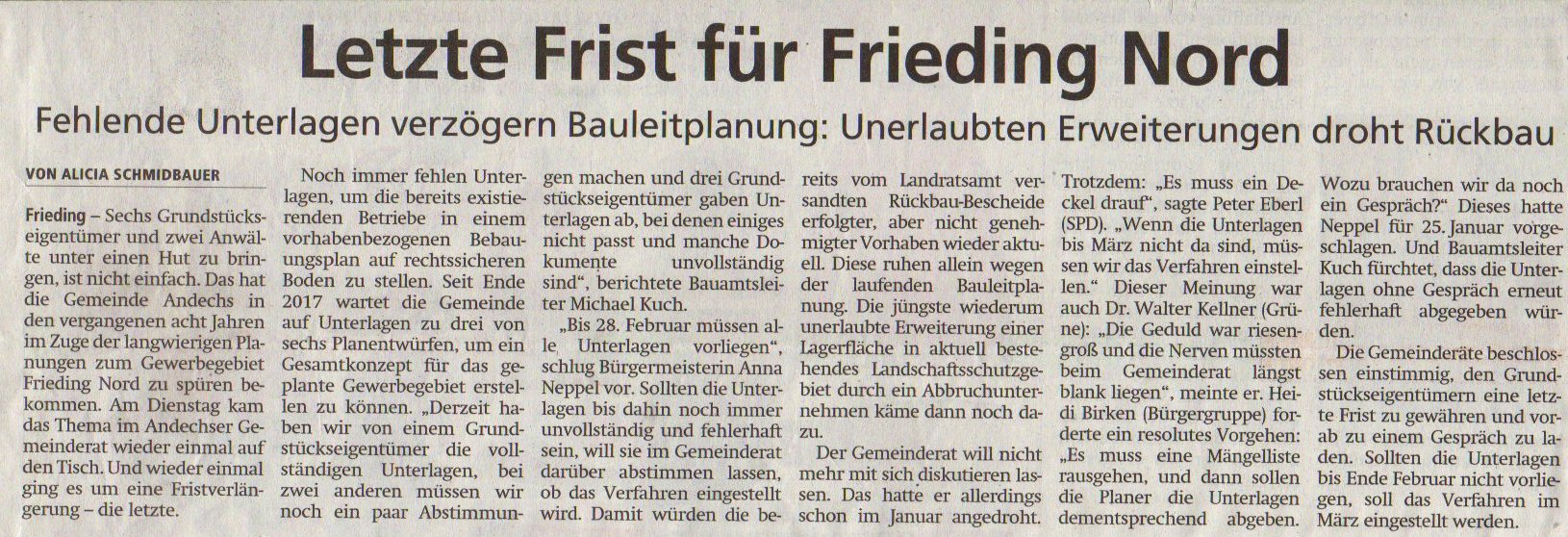 Merkur vom 14.12.2018 - Letzte Frist für Frieding-Nord