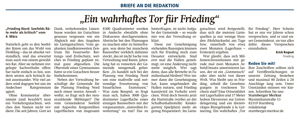 Merkur vom 15./16.03.2014 - Niemand will Frieding Nord