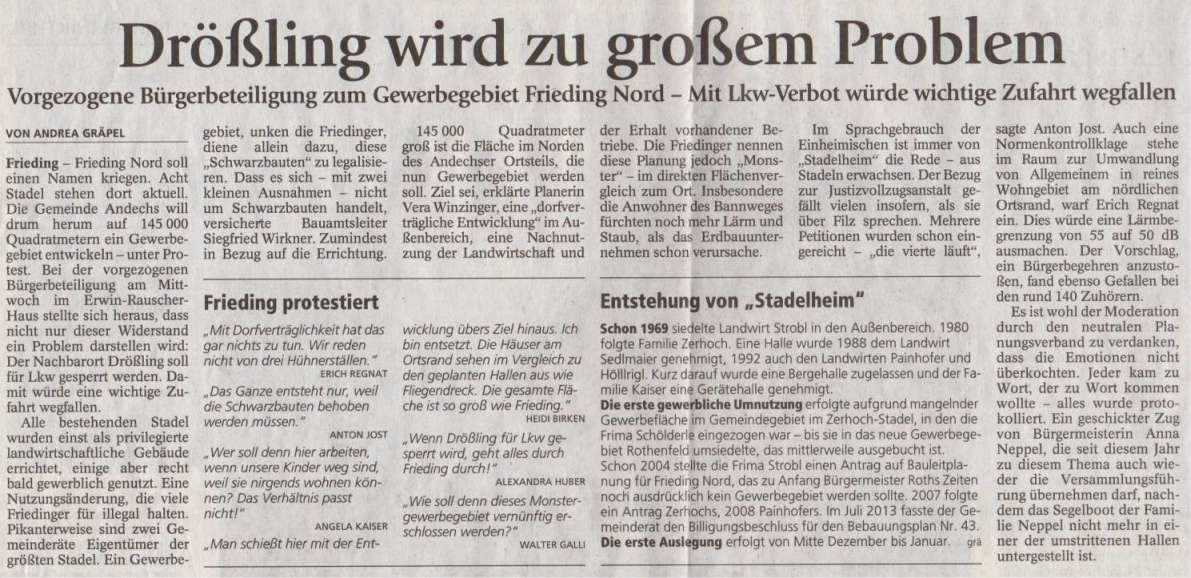 Kreisbote vom 20.12.2014 - Diskussion über geplantes Gewerbegebiet Frieding Nord