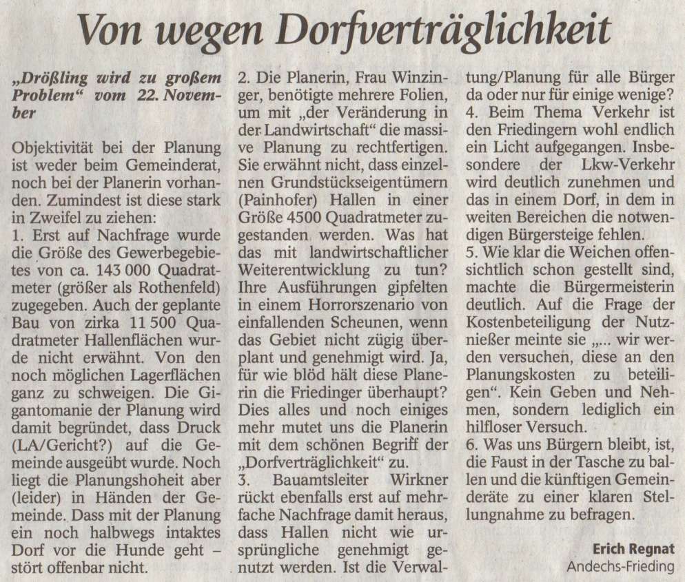 Kreisbote vom 20.12.2014 - Diskussion über geplantes Gewerbegebiet Frieding Nord