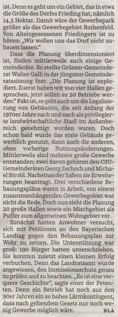 Süddeutsche Zeitung vom 22.04.2016 - Frieding Nord wird nochmals reduziert