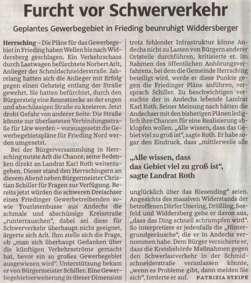 Kreisbote vom 20.12.2014 - Diskussion über geplantes Gewerbegebiet Frieding Nord