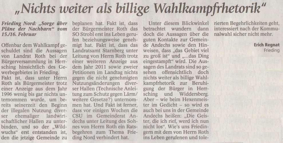 Merkur vom 26.02.2014 - Nichts weiter als billige Wahlkampfrhetorik
