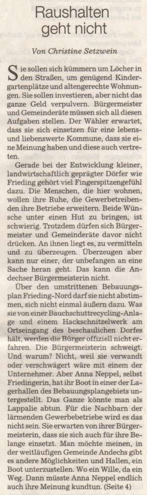 Süddeutsche Zeitung vom 04.10.2010 - Das Tor nach Frieding, das keiner will