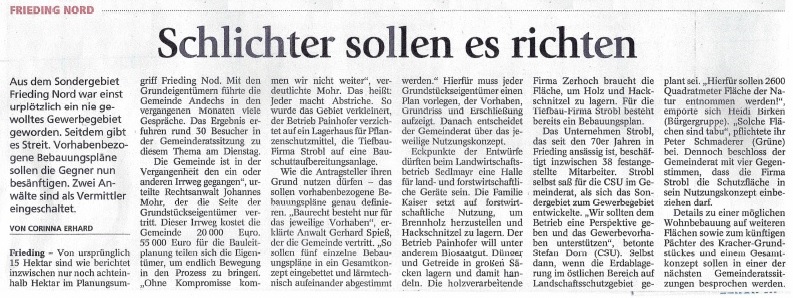 Kreisbote vom 20.12.2014 - Diskussion über geplantes Gewerbegebiet Frieding Nord